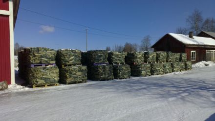 Uusia polttopuita kuivumassa kevätauringossa.